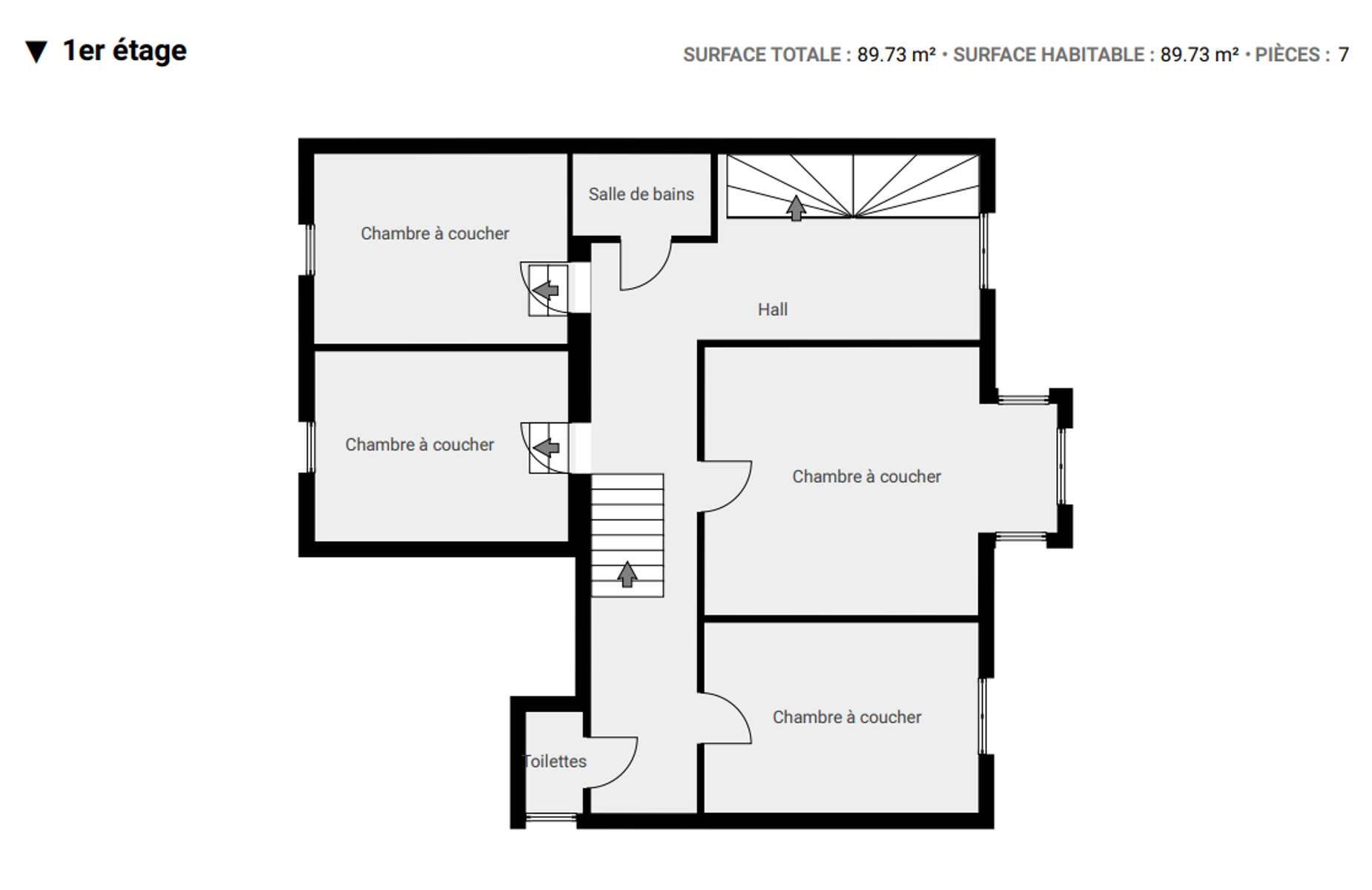 1er étage : 4 chambres, une salle de bains, un coin bureau spacieux et un WC indépendant.